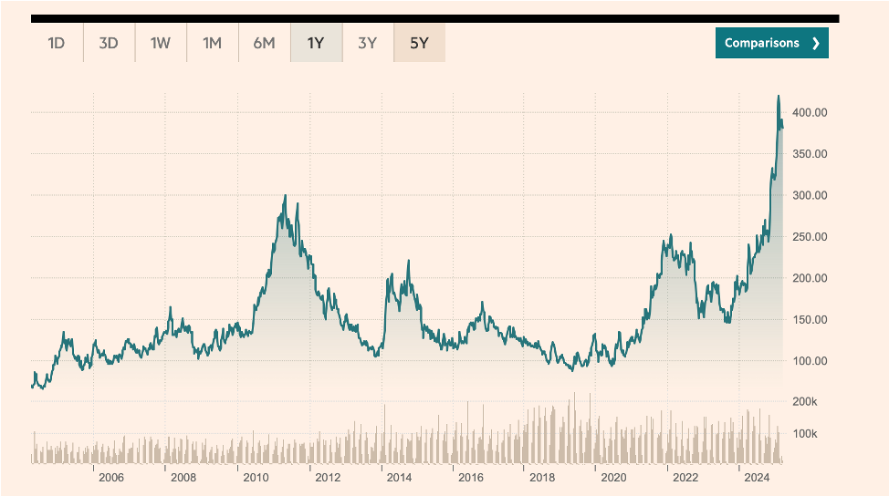 Arabica Coffee Prices 2005 – 2025: Chart courtesy of the Financial Times.